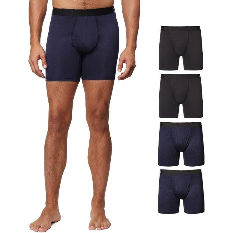 Experience comfort and ease with these 4 Pack Advanced Comfort Stretch Boxer Briefs, designed to provide support and flexibility for everyday activities. The pack includes multiple pairs, offering a practical choice for daily wear. Made with a soft and durable fabric blend, these boxer briefs are designed for lasting comfort. The elastic waistband ensures a closed fit, while the longer design helps reduce friction during movement.