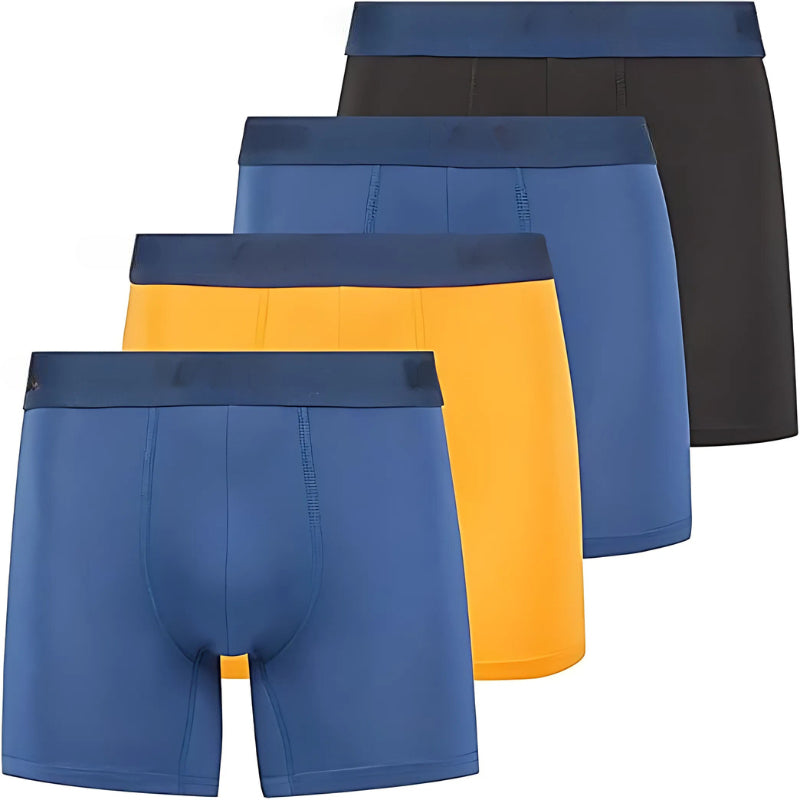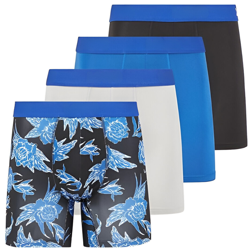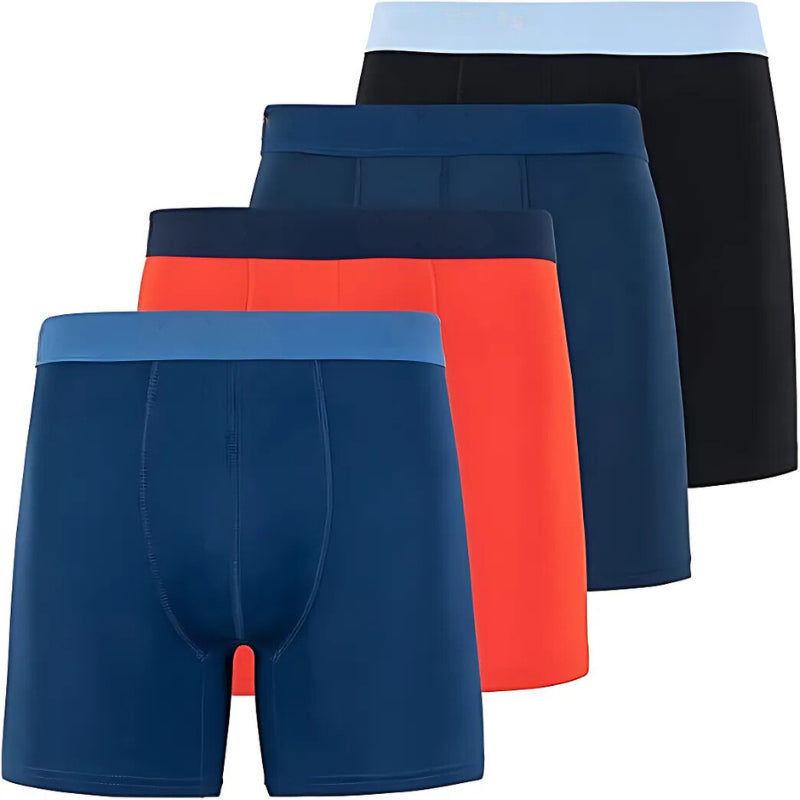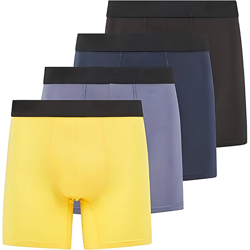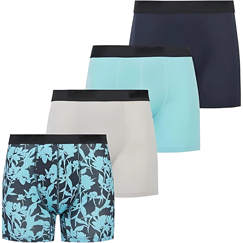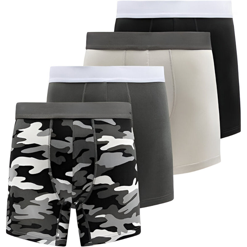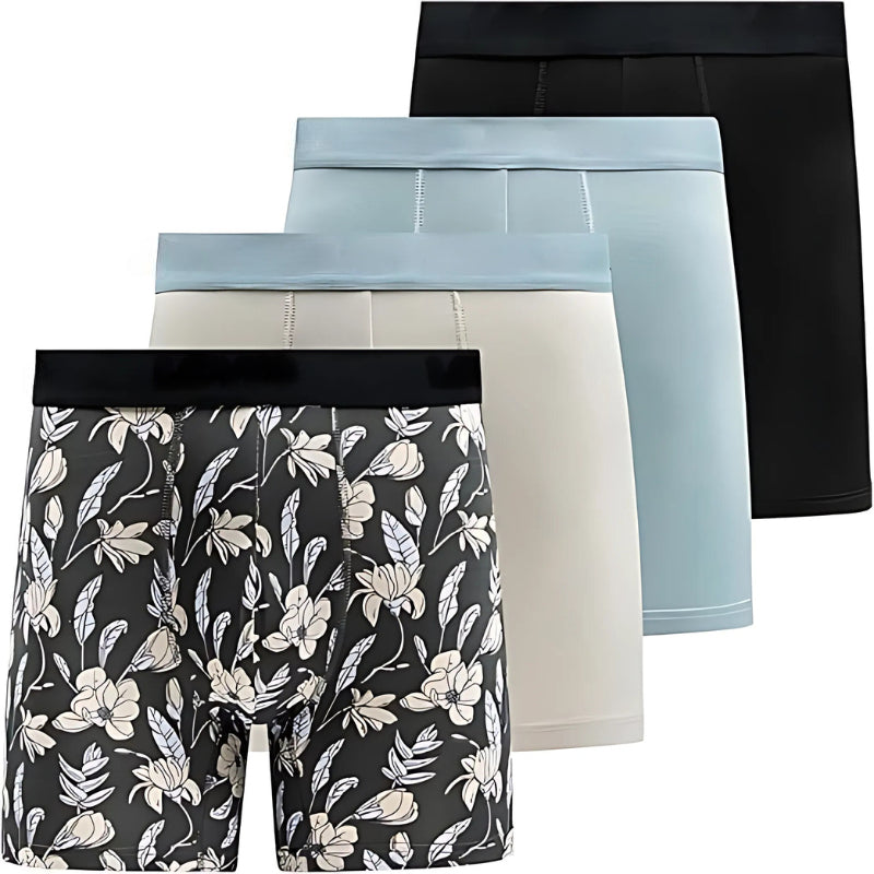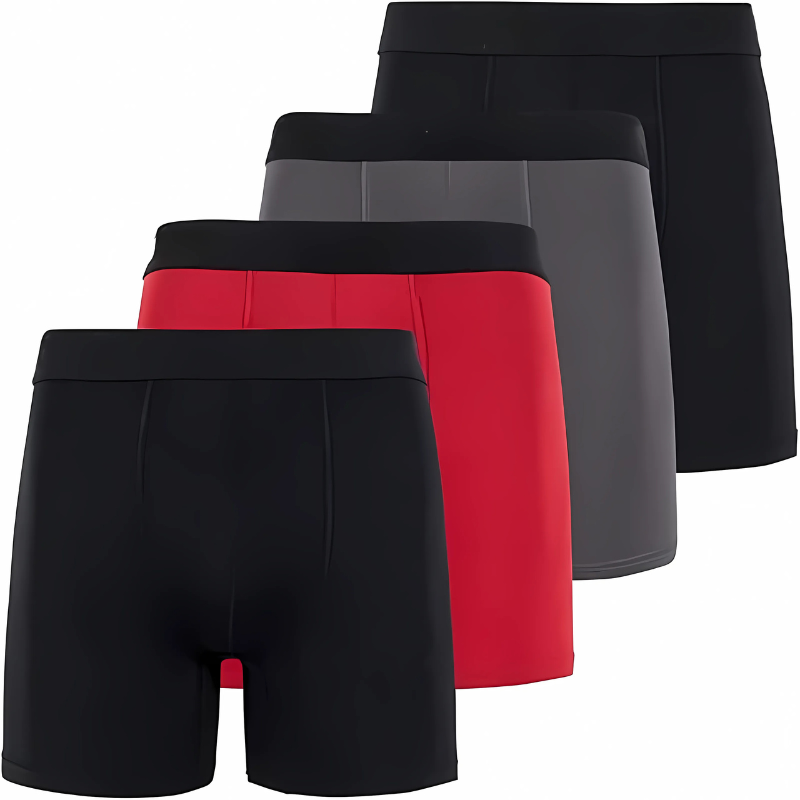 Four-Piece Set: Includes boxer briefs in black, red, and grey, giving a variety of classic color options for daily use.
