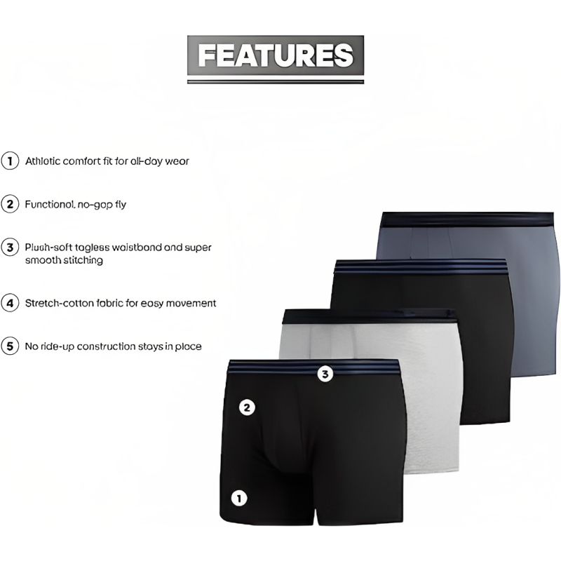 The Core Boxer Brief Underwear is designed with a contoured pouch that provides additional support and keeps everything in place. This feature adds comfort and prevents any discomfort or chafing. The overall design of the underwear offers a streamlined and flattering fit.