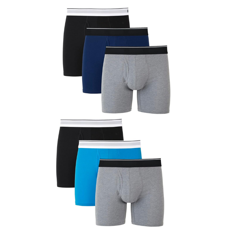 This Dynamic Comfort Six-Pack Boxer Brief a blend of solid shades and eye-catching patterns to diversify your essentials. Crafted from a soft and flexible fabric, these boxer briefs provide a comfortable fit for everyday use. The elastic waistband ensures dependable support, while the variety of colors and designs adds a fresh update to your wardrobe.
