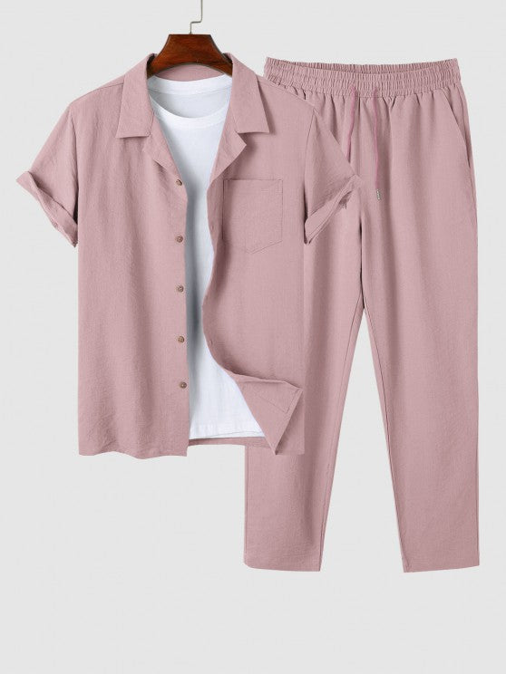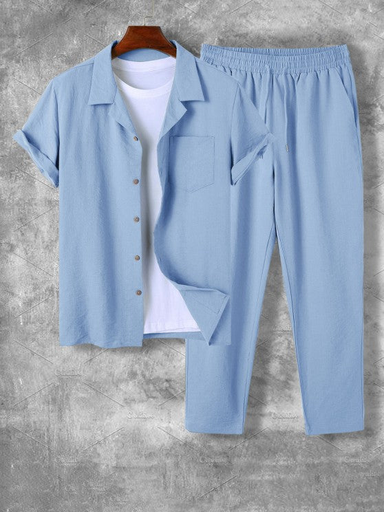 Upgrade your style game with our Lapel Collar Short Sleeve Shirt and Casual Pant. This ensemble is designed to effortlessly blend comfort and fashion. The Lapel Collar Short Sleeve Shirt exudes sophistication with its refined lapel collar, making it suitable for both formal and casual occasions. The accompanying Casual Pant completes the set with its relaxed fit and comfortable design.