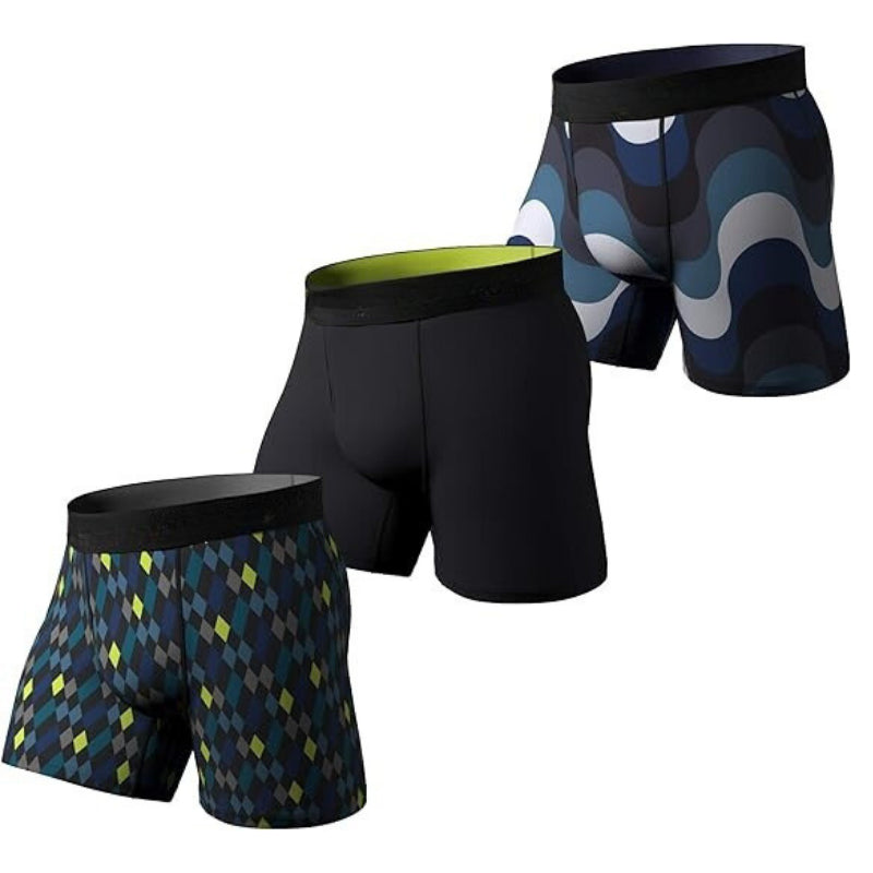 This Modern Graphic Multiple Boxer Briefs features a combination of solid colors and unique patterns, providing variety for everyday wear. Crafted from a soft, stretchable fabric, these boxer briefs ensure a comfortable and flexible fit. The elastic waistband delivers dependable support, making these an ideal choice for daily activities.