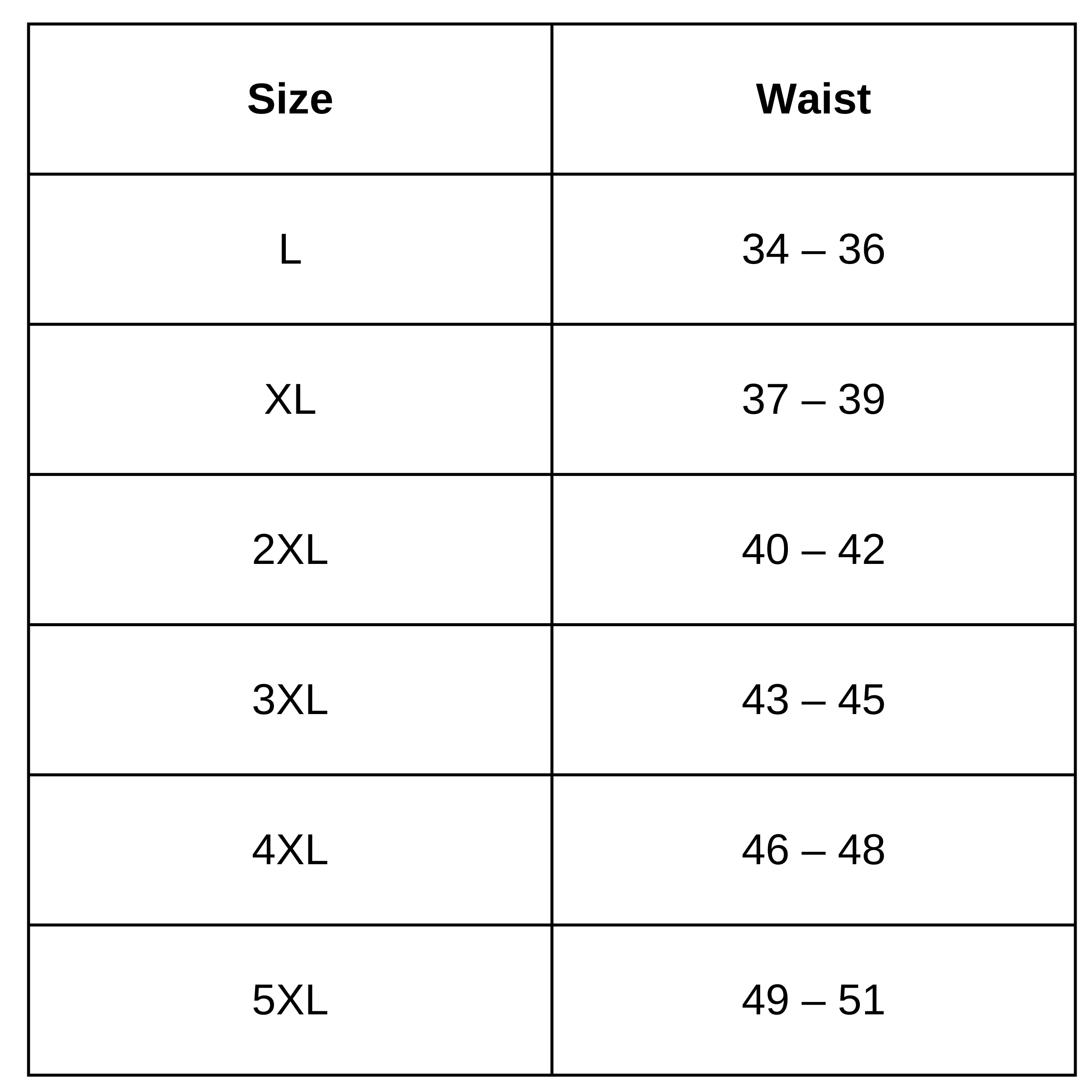 Size Chart(inches):