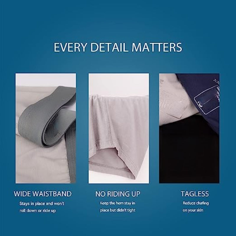 - These men's underwear with classic colors and style can bring a neat and decent feeling to your daily wear. Every piece of men's underwear is designed with a 3D U-shaped open fly pouch which can give you support with great freedom of movement.