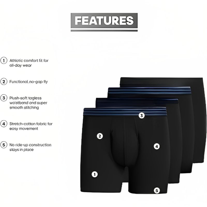 Crafted from a high-quality blend of cotton and stretch fabric, Stretch Boxer Briefs are designed to fit snugly and retain their shape throughout the day. The stretch material allows for a flexible fit that moves with your body, ensuring comfort during any activity. Offers a variety of colors or patterns to choose from, allowing you to mix and match according to your preference.