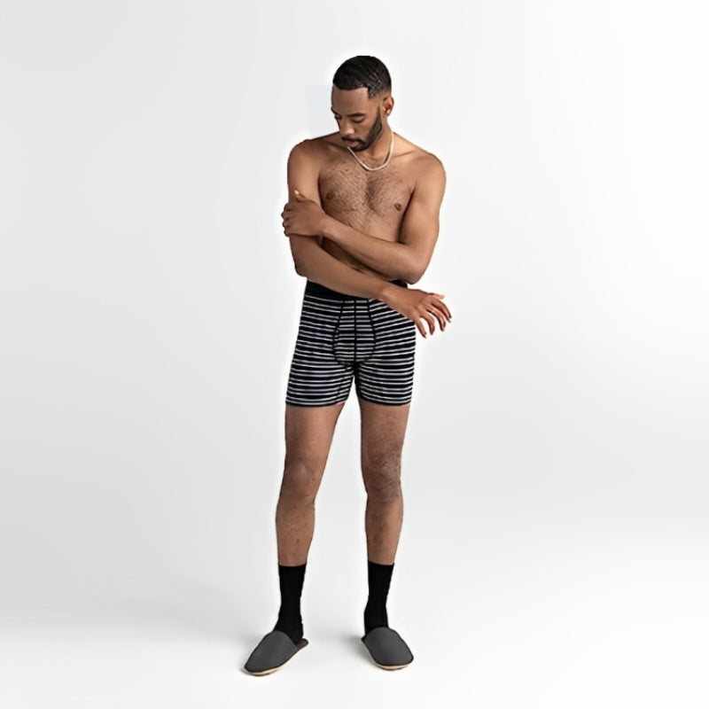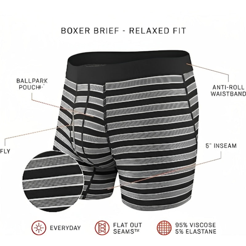 The Striped Boxer Briefs With Built-In Pouch. The design enables the flexible waistband to guarantee a secure fit. Our Striped Boxer Briefs with Built-In Pouch ensure unrivaled comfort and style whether you're at work, working out, or just lounging at home.
