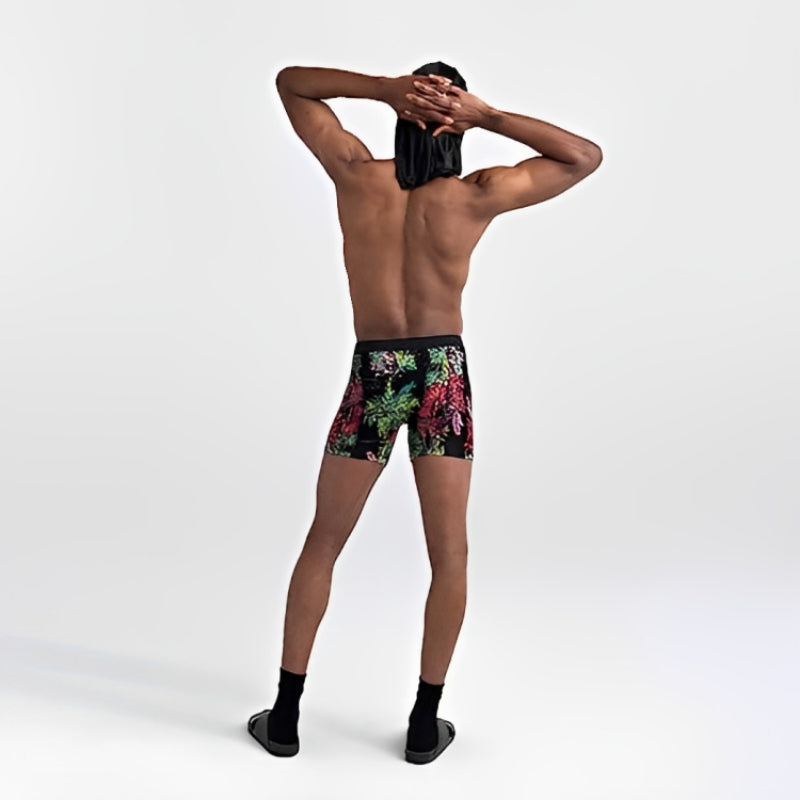 Our Tropics Print Boxer Briefs, are a vivid and exotic design where comfort meets paradise. These boxer briefs have a gorgeous tropics print that showcases palm trees, exotic flowers, and other tropical characteristics that make you want to take a trip somewhere.